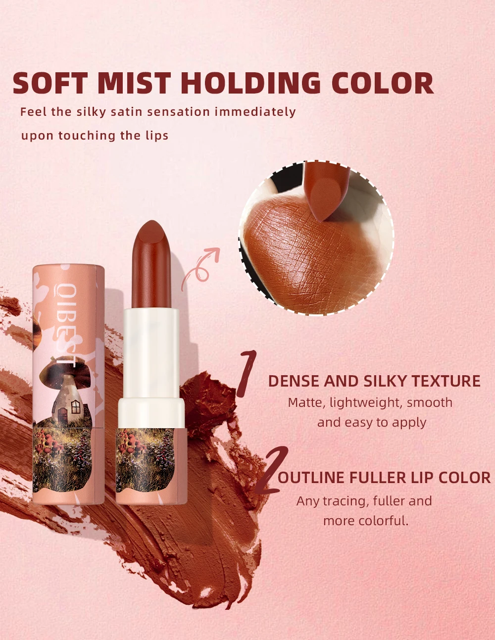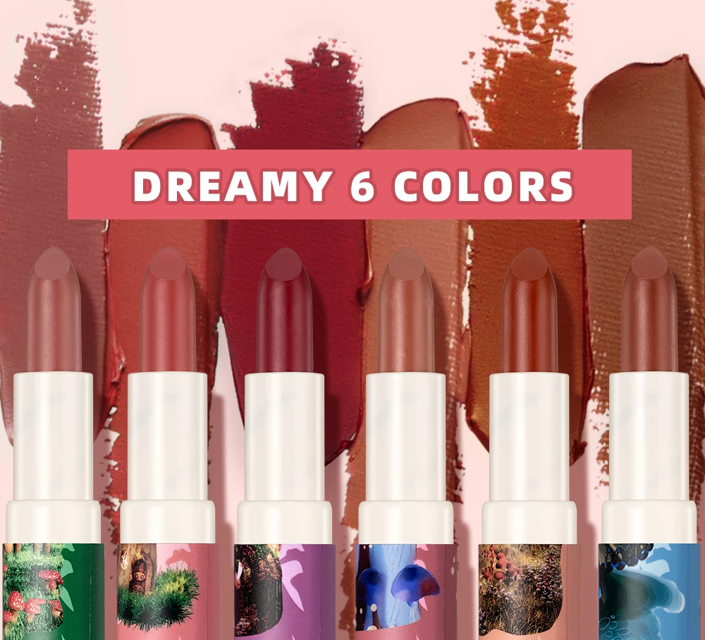 Rouge à lèvres Fantasy 6 couleurs en forme de champignon — maquillage longue tenue, rouge velours sexy, teinte pour les lèvres hydratante, gloss nude, cosmétique pour femmes.
